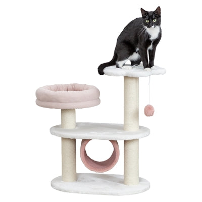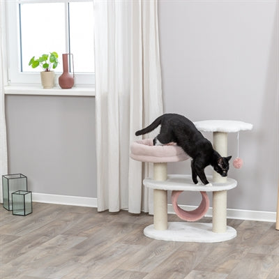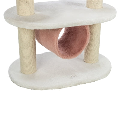 De Trixie Krabpaal Isabella Wit/Oudroze 58X38X70 cm is een luxe krabpaal voor katten die is vervaardigd uit jute, pluche en koordstof. Dit krabmeubel biedt zowel speel- als rustmogelijkheden. Het gevoerde ligplateau met een afneembare relax-mand en het mandje met een zacht pluche ligvlak zorgen voor ultiem comfort. Daarnaast is er een bekleed ligplateau en een speelballetje voor extra vermaak. Perfect voor katten die houden van spelen en ontspannen.